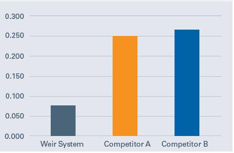 這些研究結果還預測驅動泵所需的功率減少,預計Weir配置相比其他主要競爭對手更加節能。 線路損耗的減少也有助于確保在地面測得的泵壓能更準確地反映輸送到地層中的物質。