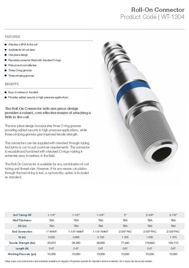 該接頭可通過管道提供標準工具接頭或進行切割,以滿足客戶的要求。該接頭可重復使用,并配有標準的O型圈,使它在現場非常容易進行更換操作。
